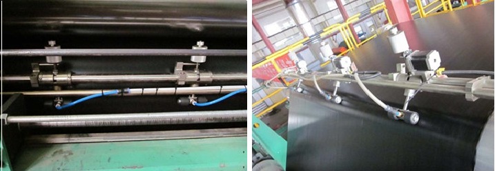 其中上、下胶片测量各安装左、右2点,胶片总厚度测量安装左、中、右3点。为了保证测量精度,胶片总厚测量处需要增加高精度基准辊。