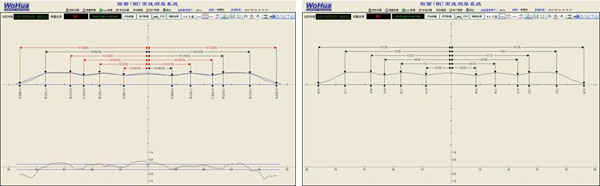 3、对胎面(侧)的厚度轮廓、宽度以及与标准值的偏差进行比较,对口型板是否合格做出判断,并进行修正。